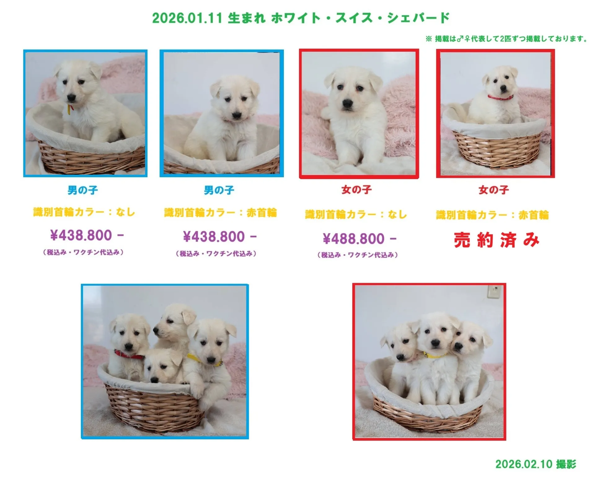 ☆ 2026.1月11日 生まれ ホワイト・スイス・シェパードの子犬(男の子・女の子)の見学予約受付を開始しました!!