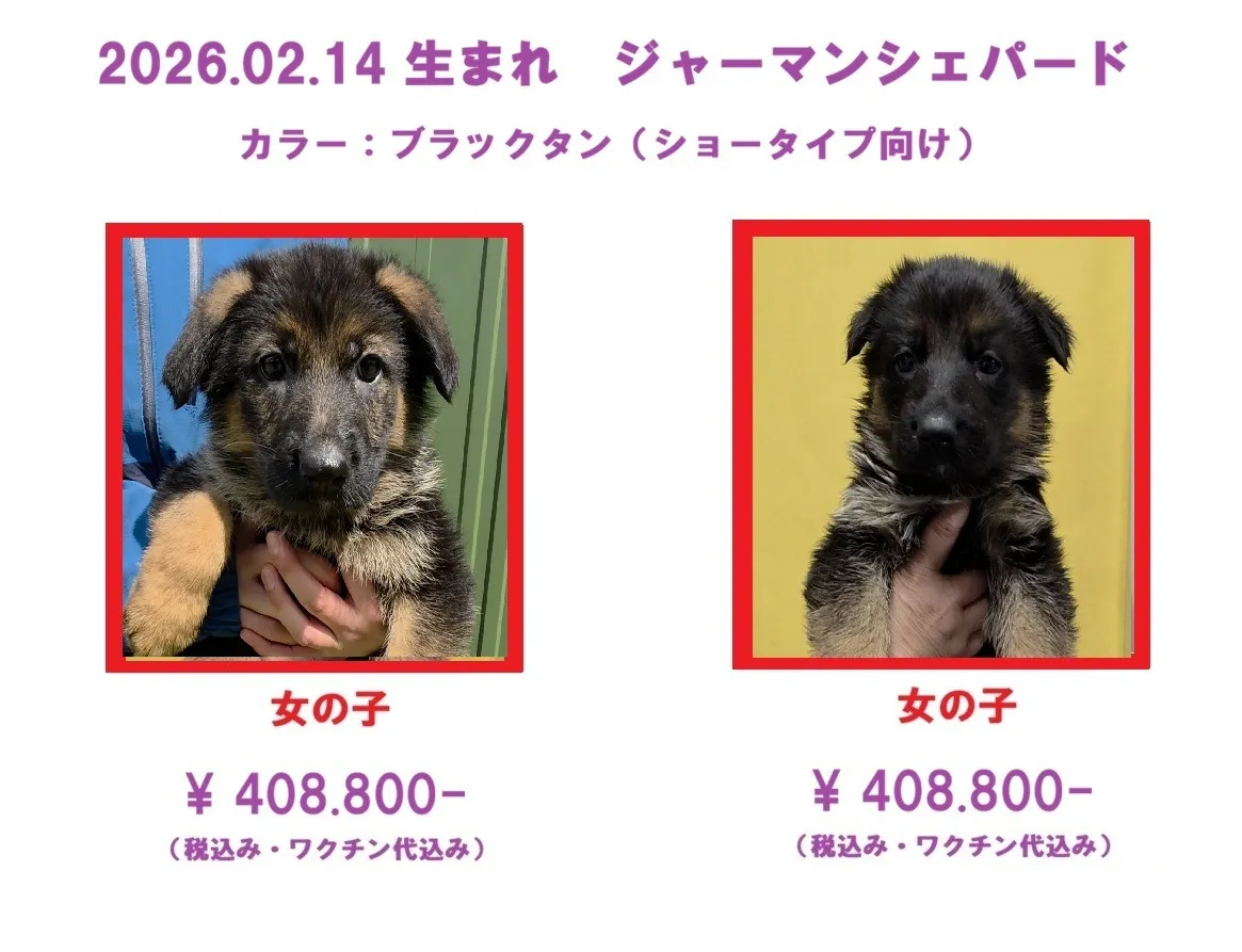 ☆ 2026.02.14 生まれ『ジャーマンシェパード』の子犬は女の子2匹のみ販売中です。